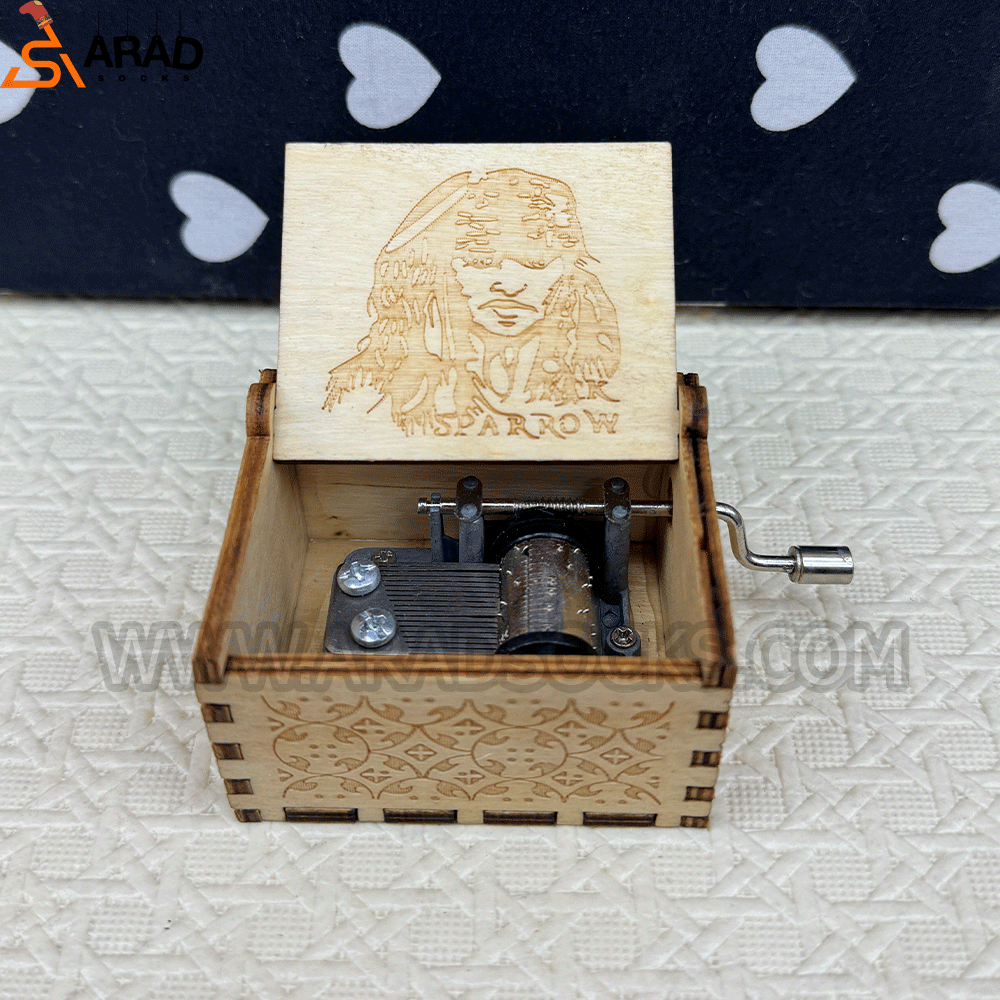 این جعبه های موزیکال از جنس چوب و دارای حکاکی میباشد. با چرخاندن اهرم کنار جعبه جهت عقربه های ساعت، شروع به پخش بخشی از اهنگ SPARROW میکند. ابعاد این جعبه ها 4*5*6 سانتی متر میباشد. این جعبه های موزیکال در طرح های مختلف در فروشگاه موجود است.