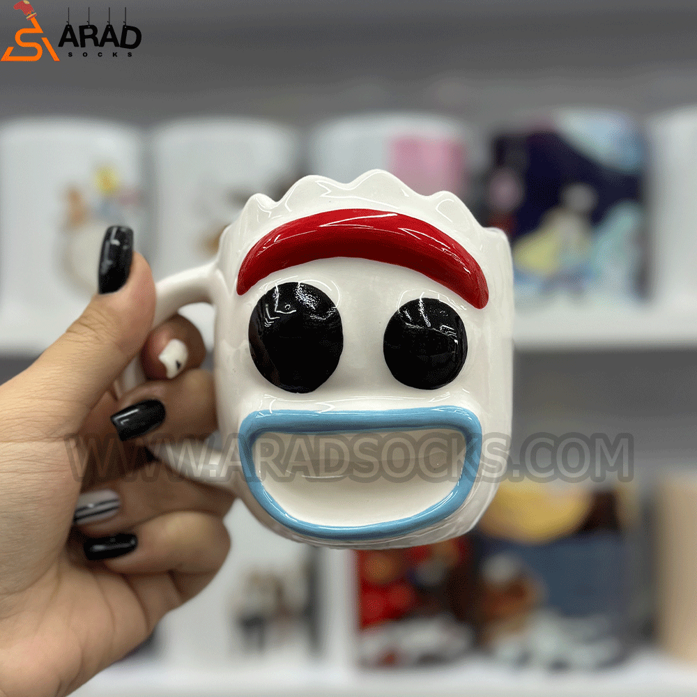 ماگ دستساز فانتزی طرح انیمیشن اسباب بازی ها شخصیت فورکی از جنس سرامیک با کیفیت و نوع رنگ آن لعاب ثابت است. از این ماگ های سرامیکی میتوان به عنوان دکور و گلدان نیز استفاده کرد. این ماگ ها در طرح های متنوع و شخصیت های محبوب در فروشگاه موجود است.