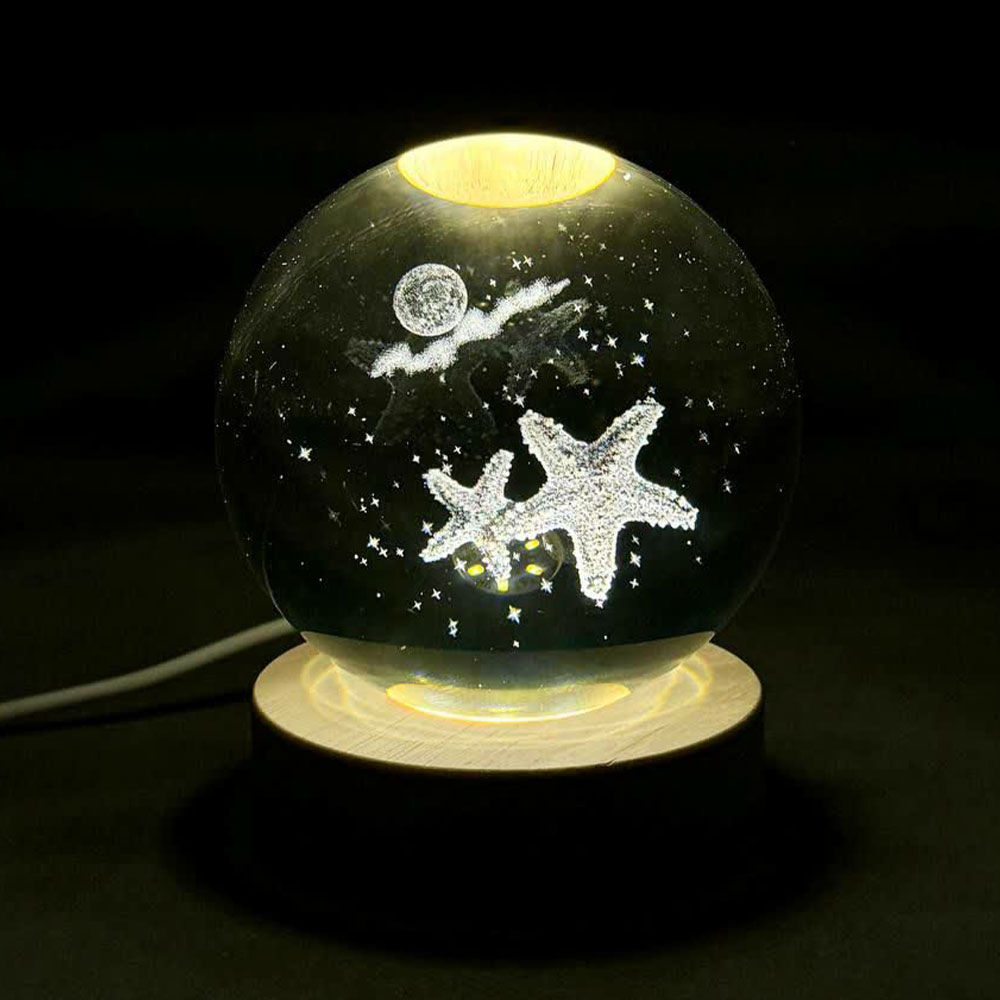 گوی کریستال سه بعدی به عنوان شبخواب نیز مورد استفاده قرار میگیرد که یک هدیه خاص و منحصر به فرد محسوب میشود. جنس این گوی، کریستال نشکن است. روشنایی این شبخواب به صورت مستقیم، زرد رنگ و از طریق برق میباشد. این محصول دارای یک پایه چوبی است.