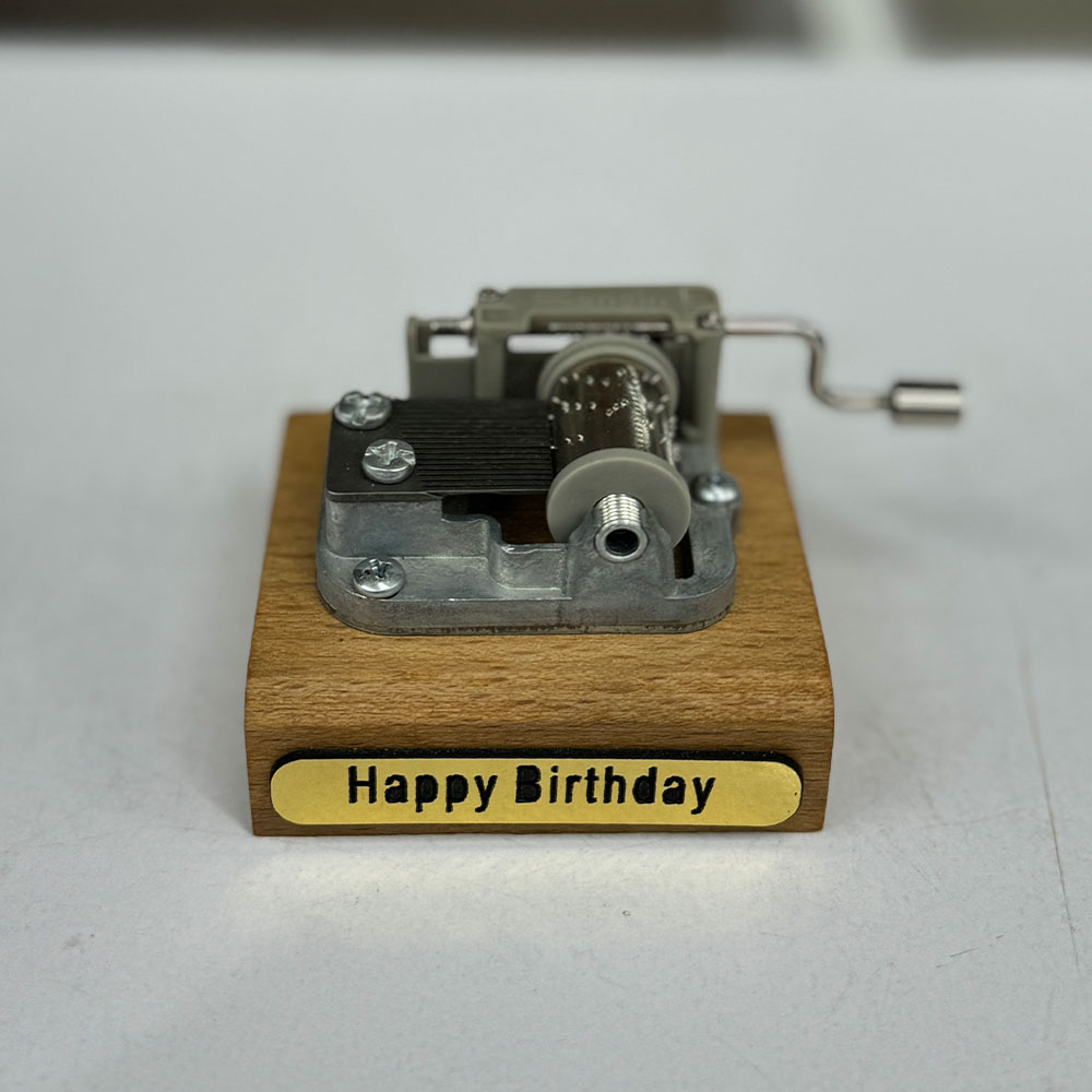 این جعبه های موزیکال از جنس چوب و دارای حکاکی میباشد. با چرخاندن اهرم کنار جعبه جهت عقربه های ساعت، شروع به پخش بخشی از اهنگ هپی برثدی میکند. این جعبه های موزیکال در طرح های مختلف در فروشگاه موجود است.