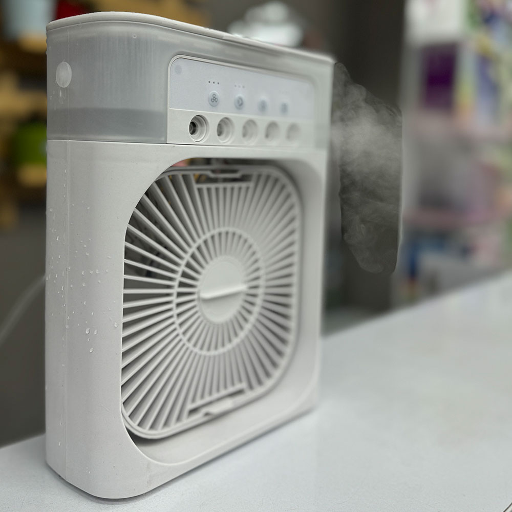 پنکه مه پاش رومیزی به صورت مستقیم توسط آداپتور و کابل USB Type C به برق متصل میشود. دارای پنج نازل مه پاش قوی و قابلیت تنظیم تعداد مه پاش ها است. دارای پد خوشبو کننده و تایمر جهت خاموشی خودکار می باشد. فن دستگاه قابلیت تنظیم دستی و چرخش ۳۶۰ درجه در یک جهت را دارد.