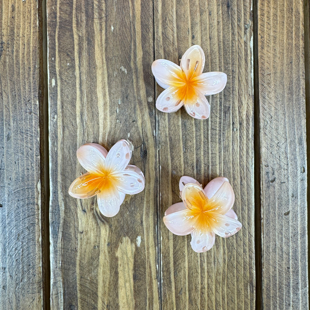 کلیپس طرح گل پلومریا که ترند این روزهاست از پلاستیک با کیفیت میباشد. این کلیپس سایز متوسطی دارد و مناسب انوع مو میباشد. این محصول سبک موی شما را نمی کشد، همچنین قابل شست و شو است و به مرور زمان رنگ خود را از دست نمی دهد.