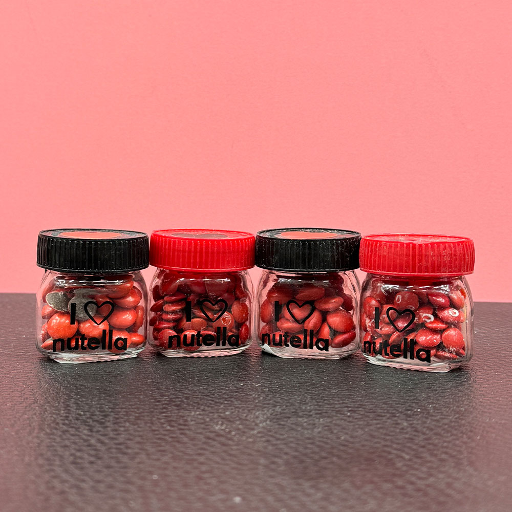 شکلات شیشه ای نوتلا حاوی اسمارتیز خوراکی خوشمزه و همچنین جذابی میتواند برای پک های ولنتاین شما باشد و زیبایی هدیه های شما را چند برابر کند.