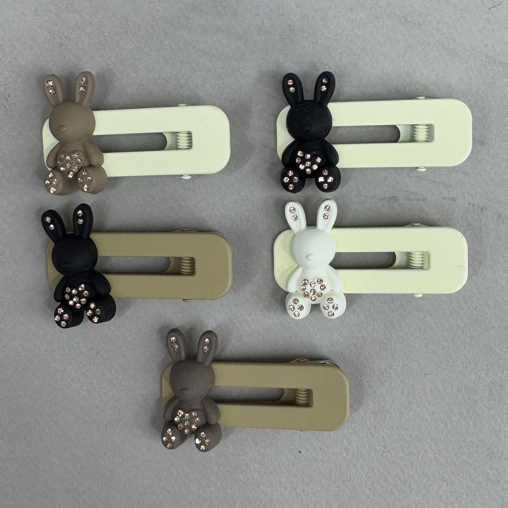 گیره مو طرح خرگوش نگین دار در رنگ های متنوع تناژ کرم و قهوه ای موجود است. این گیره انبری مناسب تمامی سنین و انواع مو ها میباشد. این گیره به دلیل کیفیت بالا و جنس مرغوب آن باعث اذیت شدن موهای شما نمیشود.