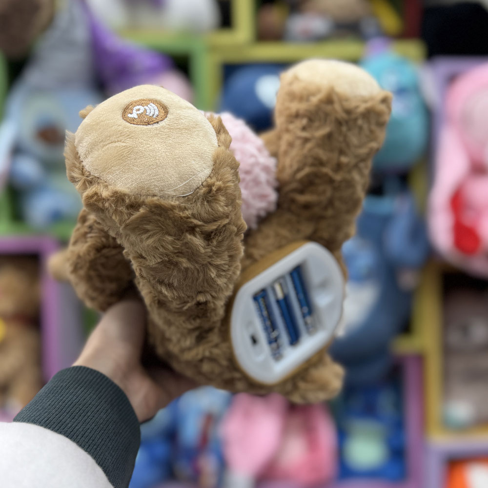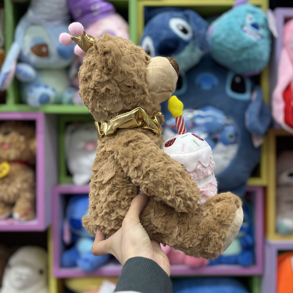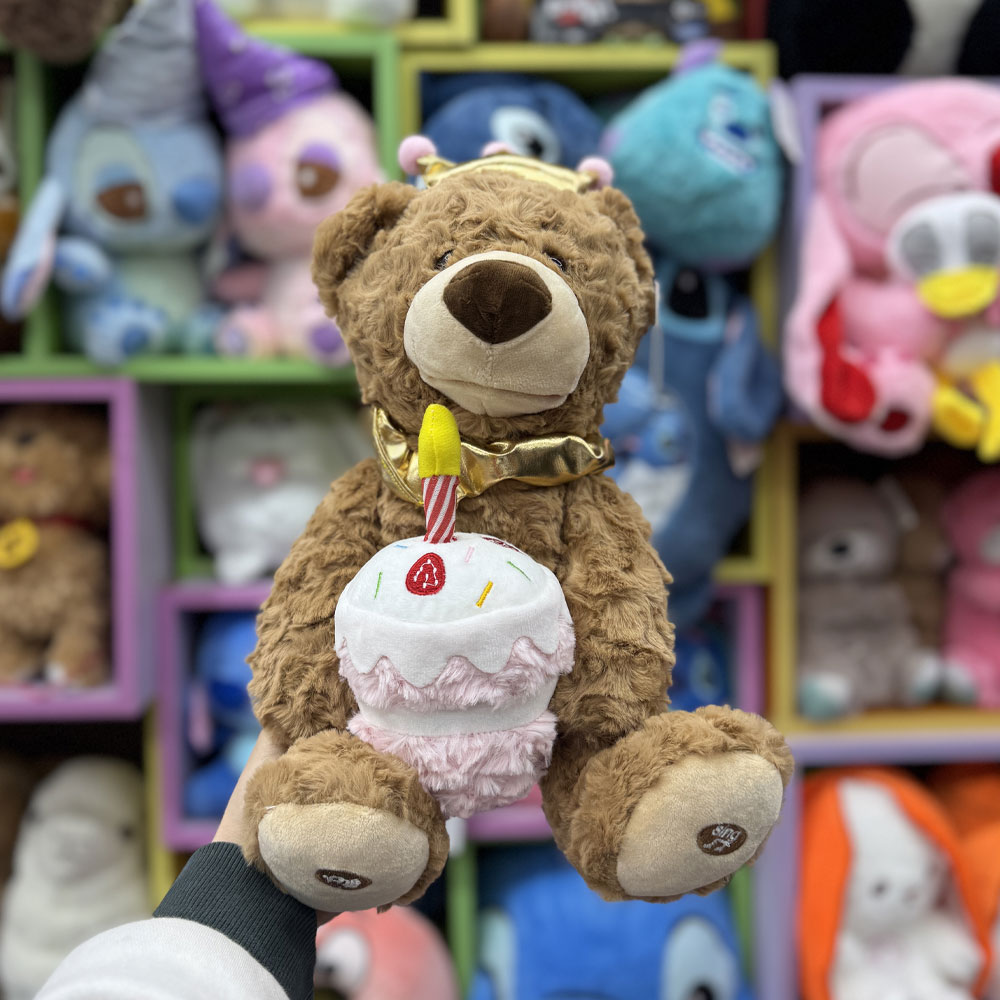 این عروسک قادر به پخش موزیک های مختلف تولد می باشد. همچنین دارای حالتی است که صدای شما را تقلید کند. در کف پاهایش دکمه های کنترلی این محصول قرار دارد.عروسک خرس به 3 عدد باطری قلمی نیاز داردو به صورت نشسته طراحی شده است.از جذابیت های این عروسک این است که وقتی آهنگ تولد را به پایان رساند شمعی را که روی کیک است فوت می کند و خاموش می شود. این محصول هم موجب سرگرمی کودکان می شود و هم در دکور قابل استفاده است.
