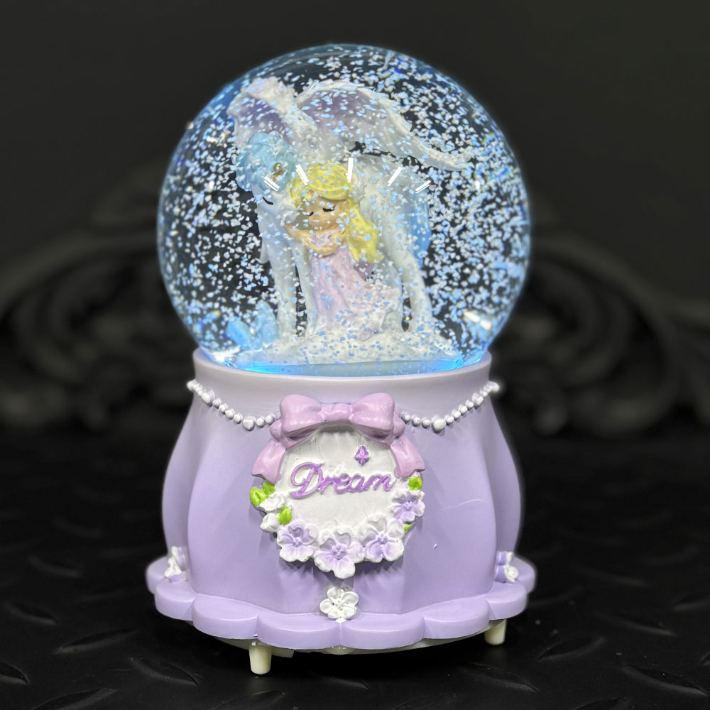 در قسمت تهتانی این گوی موزیکال یک شاسی کوچک قرار گرفته است ، که با زدن آن شروع به نواختن ملودی ملایمی می کند. این موزیک بعد از اتمام تغییر می کند و موزیکی جدید شروع به پخش خواهد کرد. در حین نواختن چراغی زیبا با رنگ های مختلف فضای داخلی گوی برفی را نورانی خواهد کرد ،تا صحنه ای بسیار زیبا و خارق العاده پدید آید. روشن کردن این گوی در تاریکی شب موجب می گردد انعکاس ها و سایه های پدید آمده از برف های در حال بارش و عروسک های داخل گوی در فضای بیرونی گوی زیبایی این محصول را دو چندان کند. این گوی موزیکال دارای یک پمپ الکتریکی بوده که برف را بصورت مستمر و پیوسته پمپ خواهد کرد تا بارش آن متوقف نگردد. منبع تغذیه ی این گوی موزیکال سه عدد باطری نیم قلمی است که در قسمت زیرین آن جای گذاری خواهد شد.کیفیت این محصول از نوع درجه یک بوده و در ساخت عروسک های داخلی و نیز پوسته ی گوی ظرافت های خاصی رعایت گردیده که جلوه ی بصری آن را دوچندان کرده است و موجب تفاوت این محصول با سایر گوی های موزیکال شده است. همچنین از لحاظ ابعادی این گوی موزیکال جزو نمونه های بزرگ بوده که با ابعاد استاندارد ساخته شده است