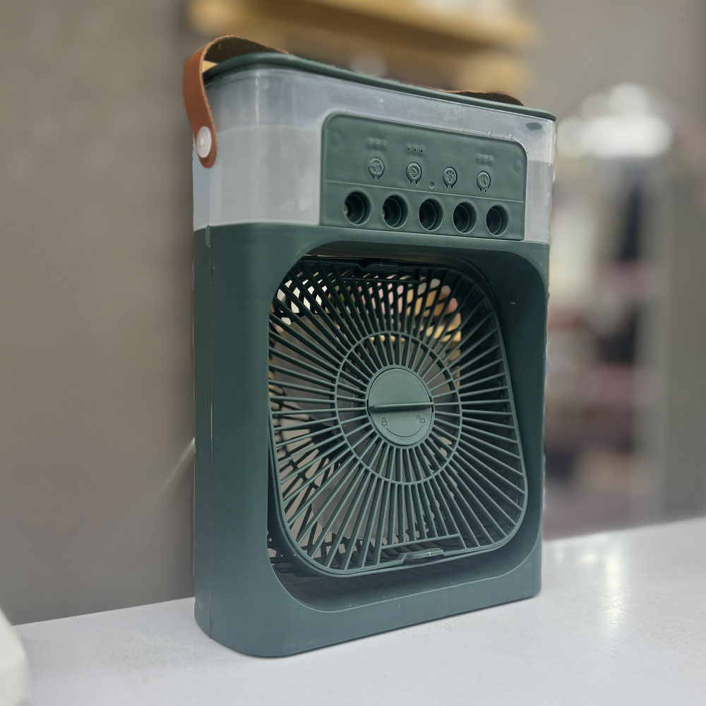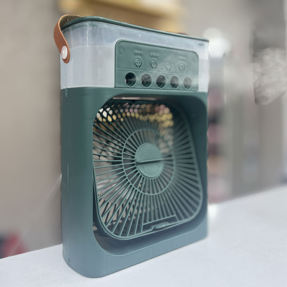 پنکه مه پاش رومیزی به صورت مستقیم توسط آداپتور و کابل USB Type C به برق متصل میشود. دارای پنج نازل مه پاش قوی و قابلیت تنظیم تعداد مه پاش ها است. دارای پد خوشبو کننده و تایمر جهت خاموشی خودکار می باشد. فن دستگاه قابلیت تنظیم دستی و چرخش ۳۶۰ درجه در یک جهت را دارد.