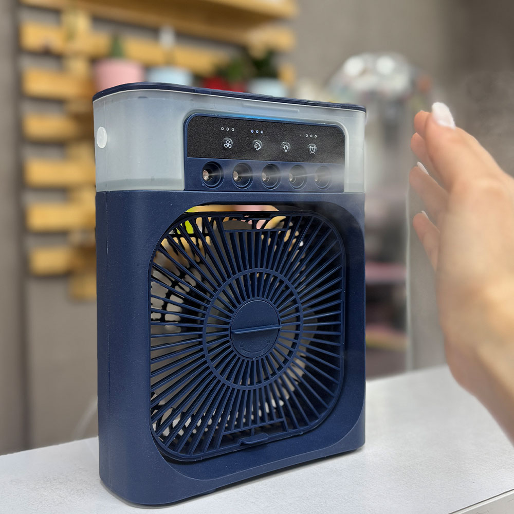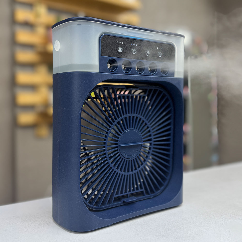 پنکه مه پاش رومیزی به صورت مستقیم توسط آداپتور و کابل USB Type C به برق متصل میشود. دارای پنج نازل مه پاش قوی و قابلیت تنظیم تعداد مه پاش ها است. دارای پد خوشبو کننده و تایمر جهت خاموشی خودکار می باشد. فن دستگاه قابلیت تنظیم دستی و چرخش ۳۶۰ درجه در یک جهت را دارد.