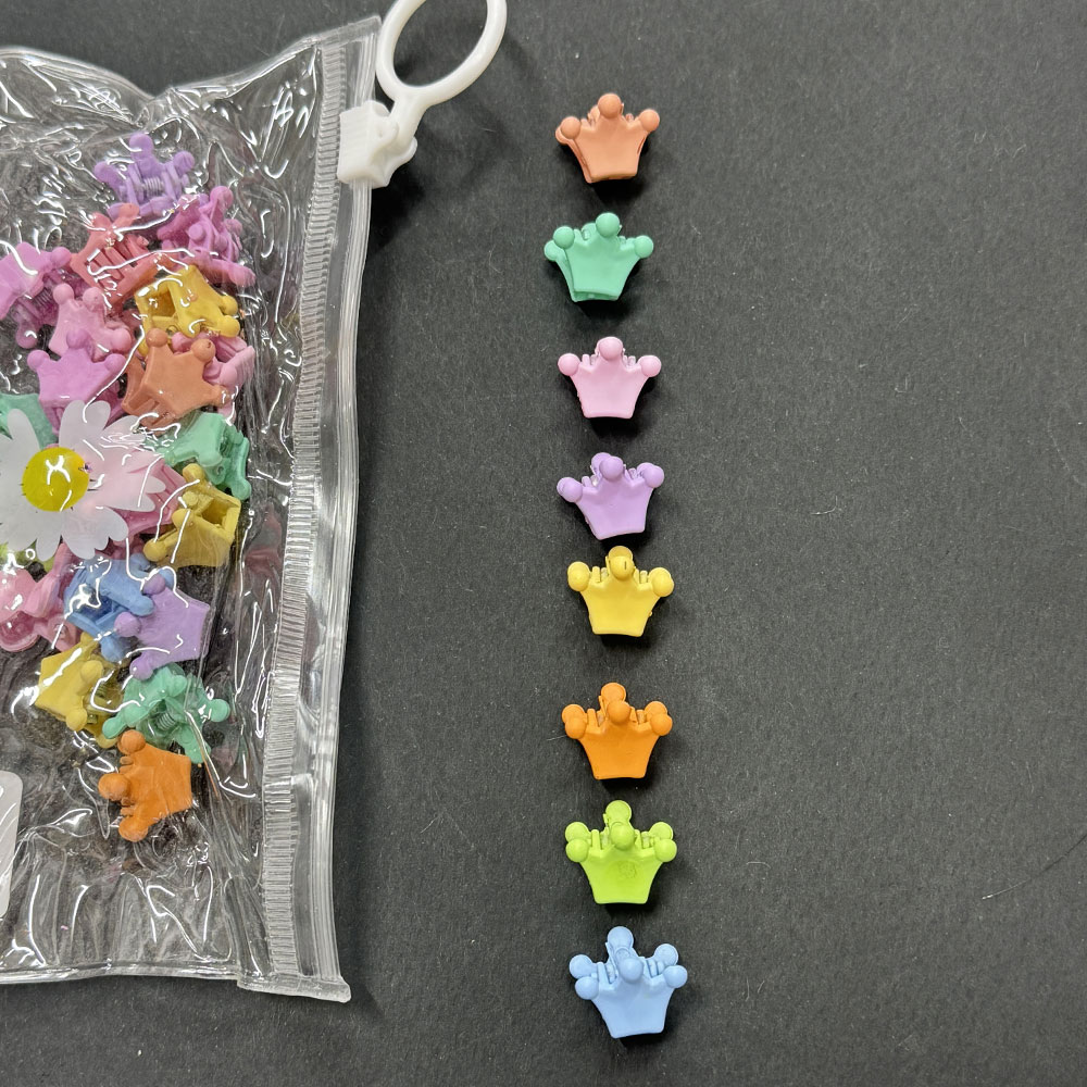 این پک کلیپس ریز شامل 30 عدد کلیپس ریز در رنگ های متنوع میباشد. این محصول در 7 طرح پروانه، گل، تاج، توت فرنگی، خرگوش، قلب و ستاره موجود است. مناسب برای تمامی سنین و همچنین هدیه ای مناسب برای عزیزانتان میباشد.