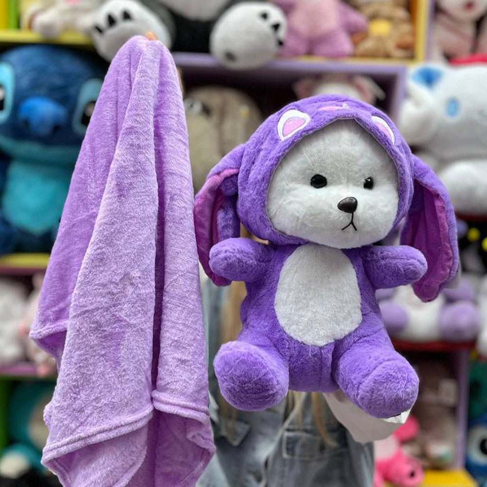 عروسک پتو بالشتی خرس لباس استیج بنفش
