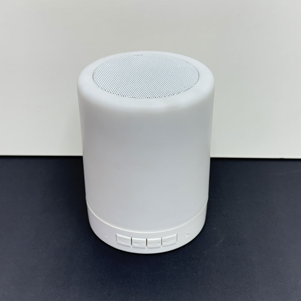 چراغ خواب و اسپیکر گرد دارای نور ثابت به رنگ سفید و اسپیکر است. این محصول شارژی و دارای کابل شارژر میباشد، ارتفاع این محصول 15 سانتی متر و جنس آن پلاستیکی است.