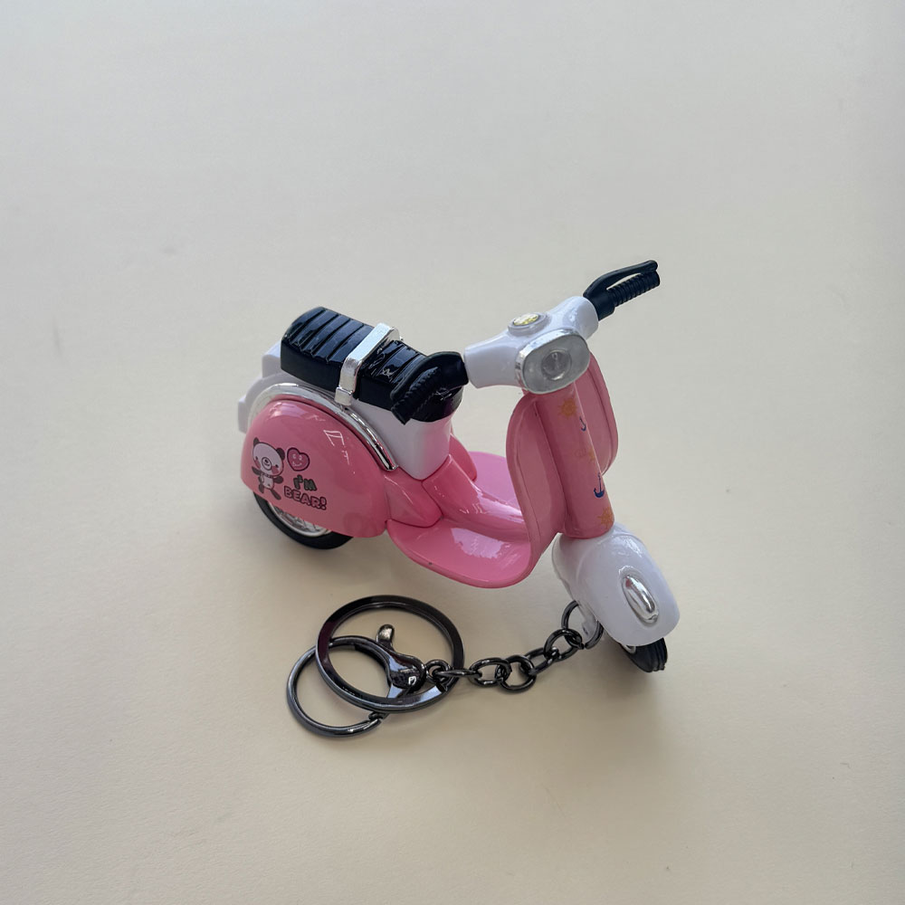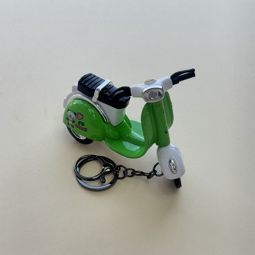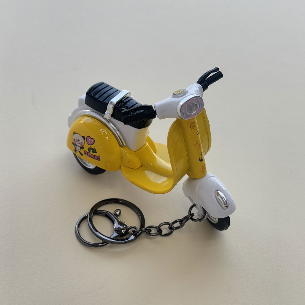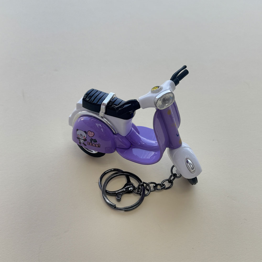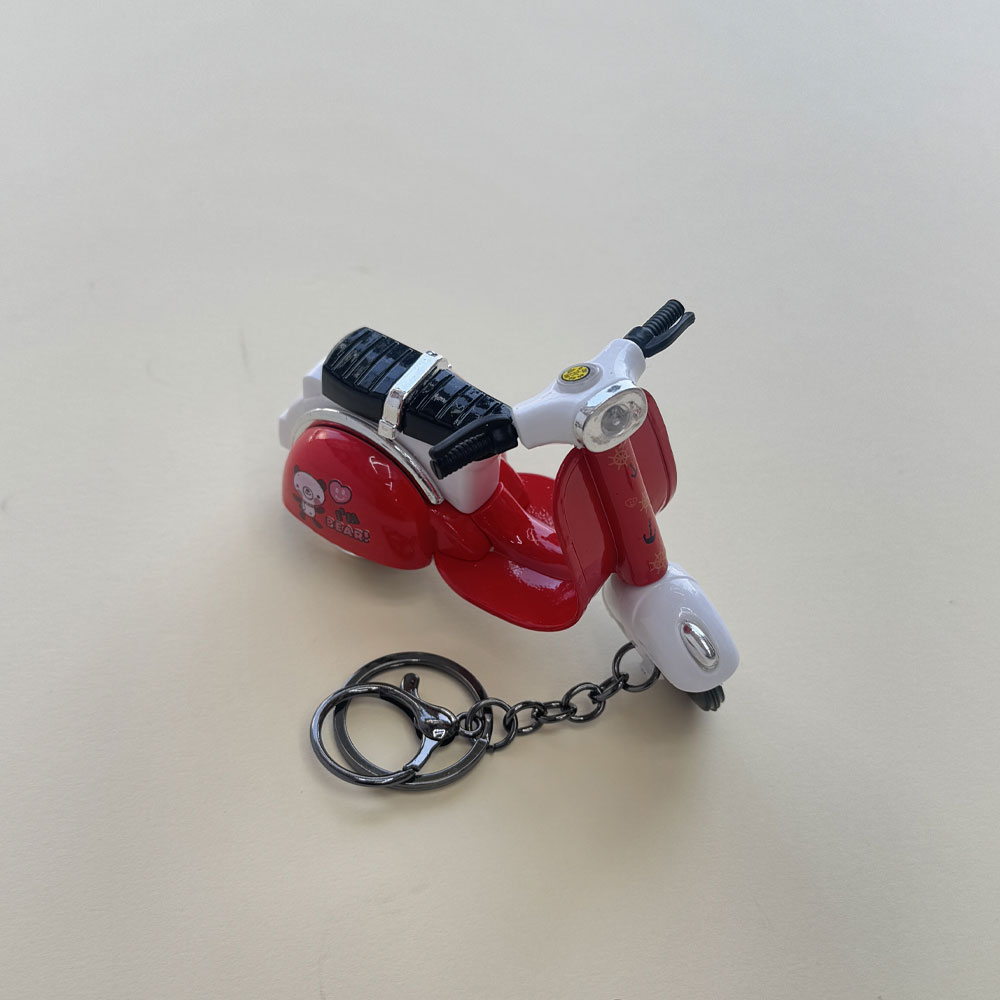 طراحی زیبای این جاسوئیچی شیک برگرفته از موتور سیکلت vespa است. جنس بدنه و حلقه آن از فلز می باشد که آن را مستحکم کرده است. این محصول شامل چندین رنگ متنوع است و با داشتن ظاهری زیبا و شیک، محصولی وارداتی است. جاسوئیچی طرح وسپا جزو جدیدترین جاکلیدی های موجود در بازار است.این محصول کوکی می باشد.