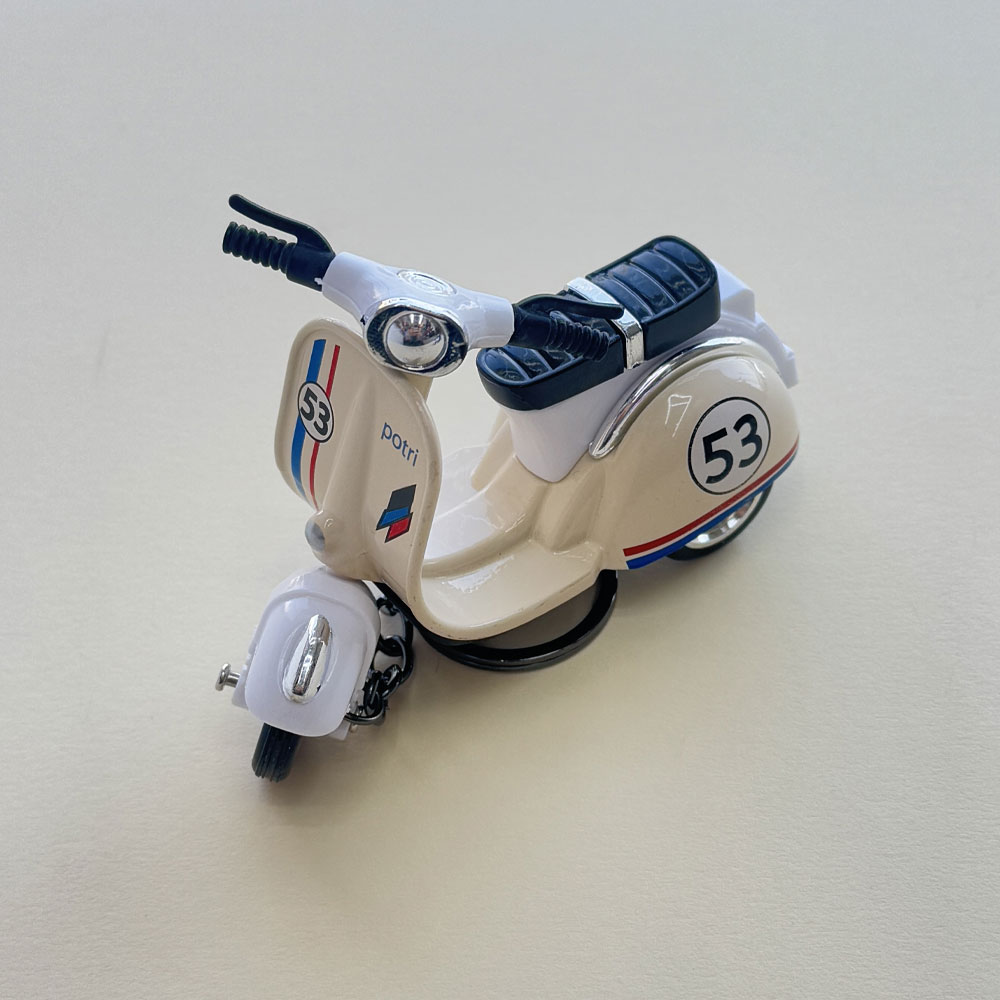 طراحی زیبای این جاسوئیچی شیک برگرفته از موتور سیکلت vespa است. جنس بدنه و حلقه آن از فلز می باشد که آن را مستحکم کرده است. این محصول شامل چندین رنگ متنوع است و با داشتن ظاهری زیبا و شیک، محصولی وارداتی است. جاسوئیچی طرح وسپا جزو جدیدترین جاکلیدی های موجود در بازار است.این محصول کوکی می باشد.
