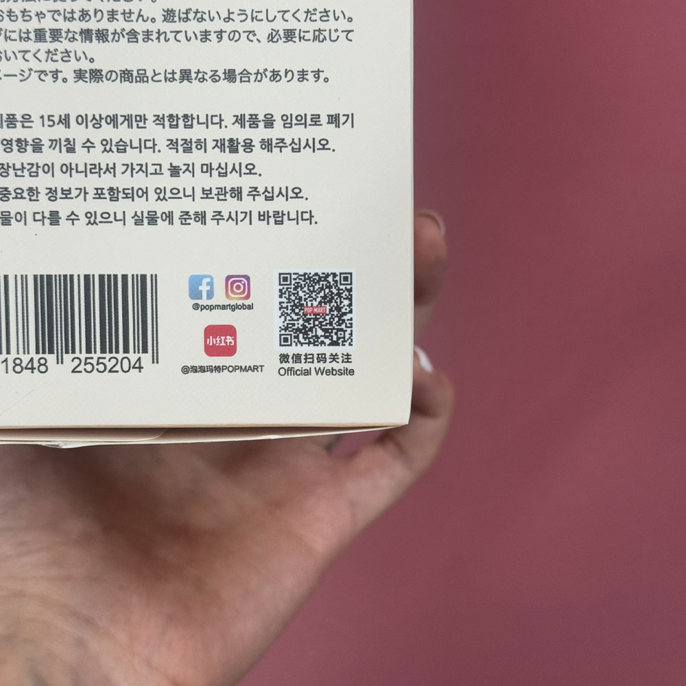 دارای QRcode و با اسکن کردن مستقیم وارد سایت popmart میشود.