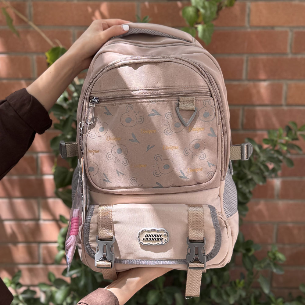 کوله پشتی فشن از جنس برزنت ضد آب می باشد. این کوله پشتی فانتزی به طور کامل آستر کشی دارد و دارای محفظه جداکننده داخل کوله ، برای تفکیک وسایل و همچنین دارای جیب بغل در طرفین ( جا قمقمه ) میباشد. ارتفاع این محصول 45، عرض 30 و عمق 14 سانتی متر است.