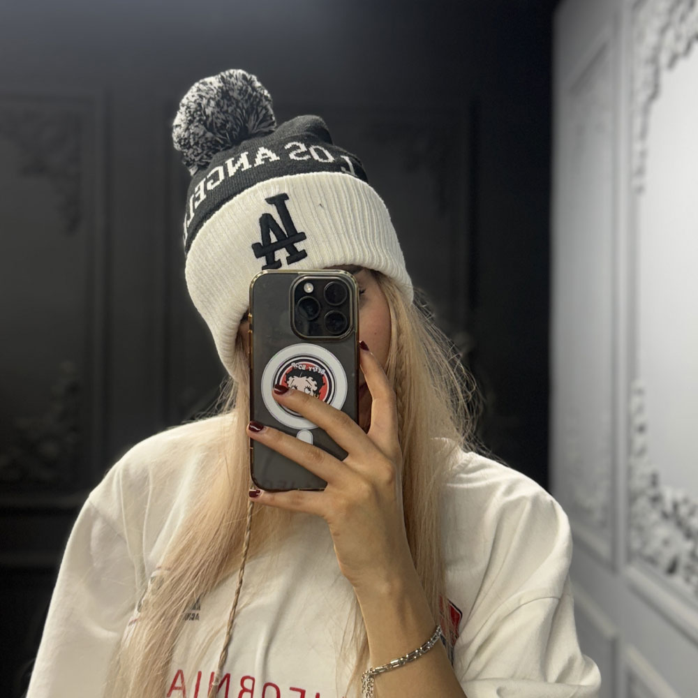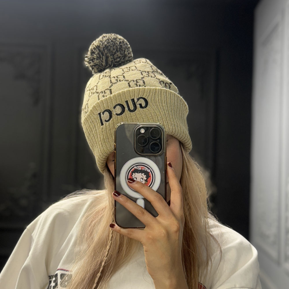 کلاه بافت پوم دار برند