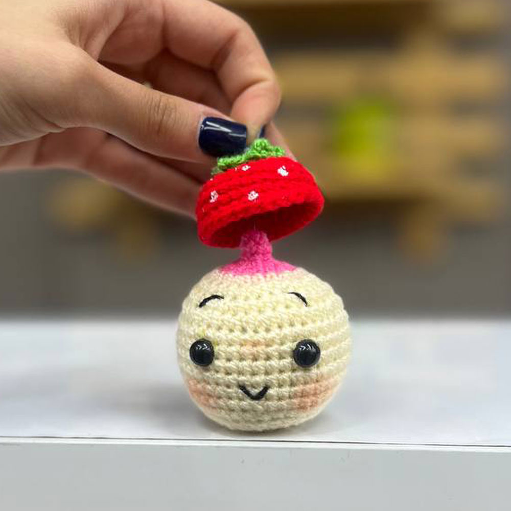 دکوری میمی کلاه دار از جنس کاموا میباشد. دکوری فانتزی مناسب گذاشتن بر روی میز،بالای تخت و هرکجا که دوست دارید میباشد. این محصول گزینه مناسبی برای بازی کودکان نیز به شمار می رود.