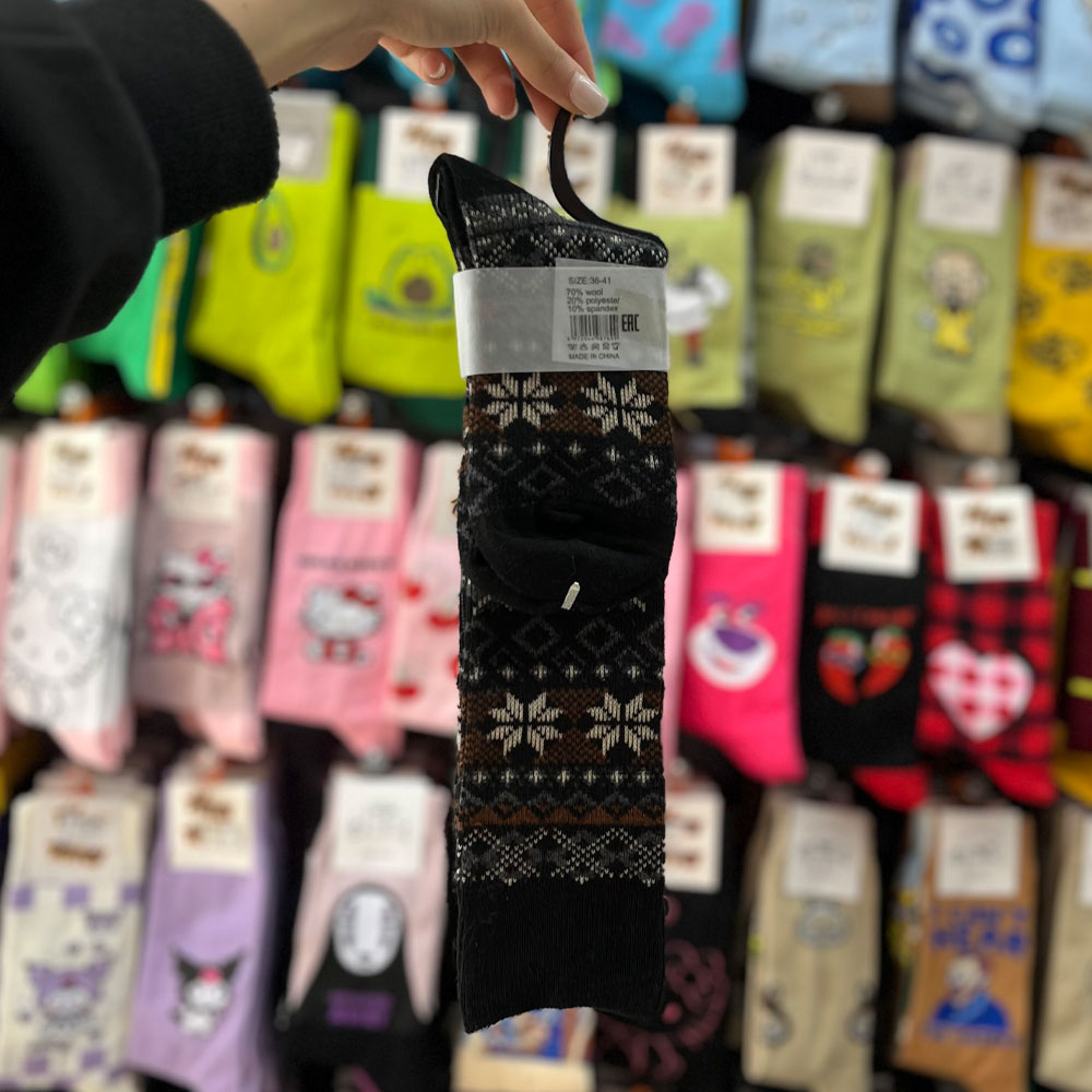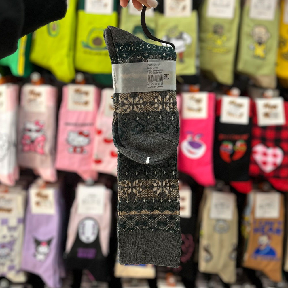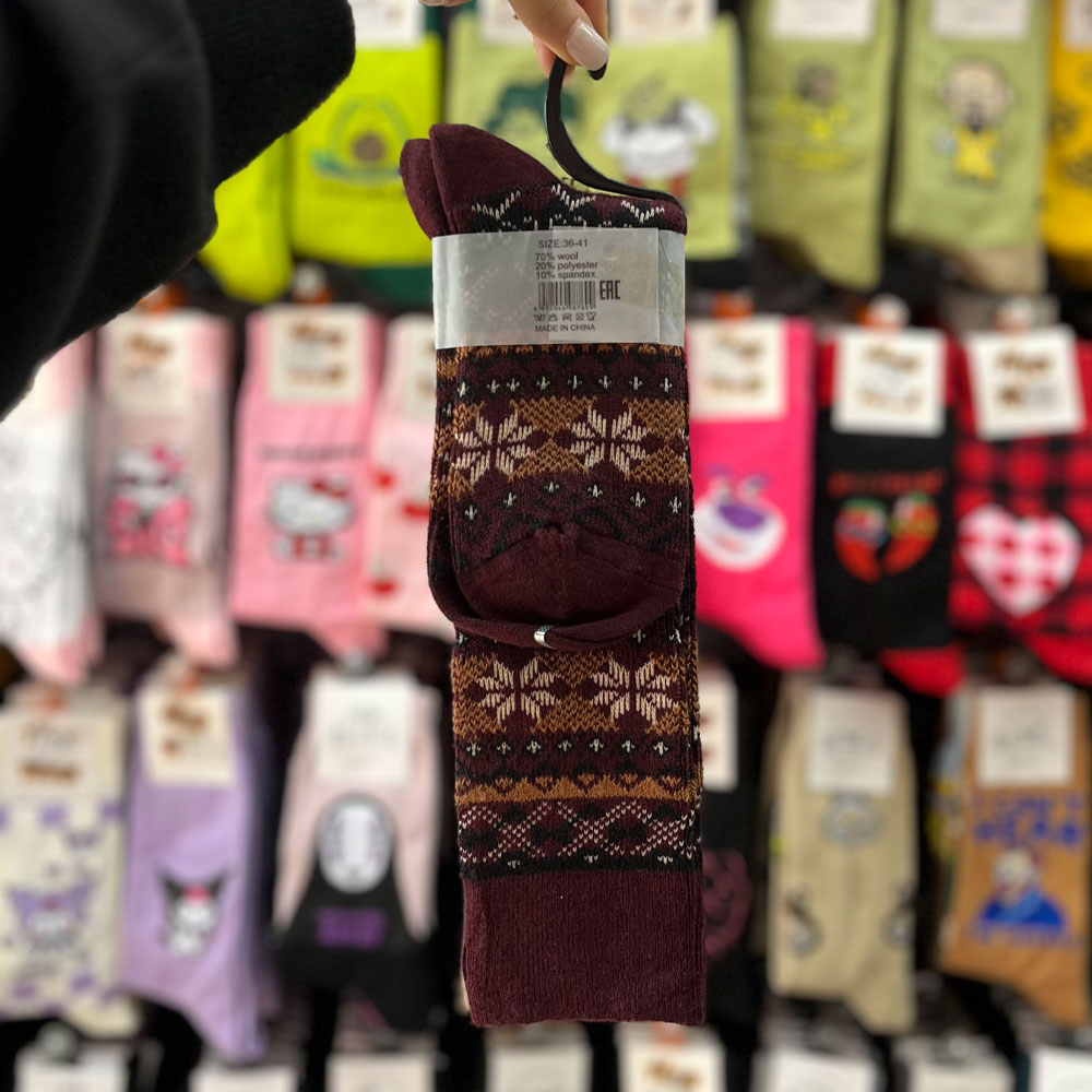 جوراب زمستانه از جنس بافت بسیار نرم و لطیف هستند و گزینه مناسبی برای گرم نگه داشتن پاهایتان میباشد. این محصول فری سایز میباشد و ارتفاع ساق آنها بدون احتساب کشسانی بودنشان حدود 25 سانتی متر است. این جوراب ها در رنگ ها و طرح های متنوع در فروشگاه موجود میباشد.
