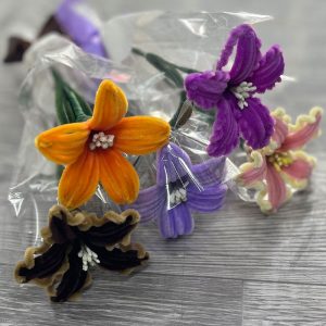 دسته گل بافت لیلیوم سفید بنفش
