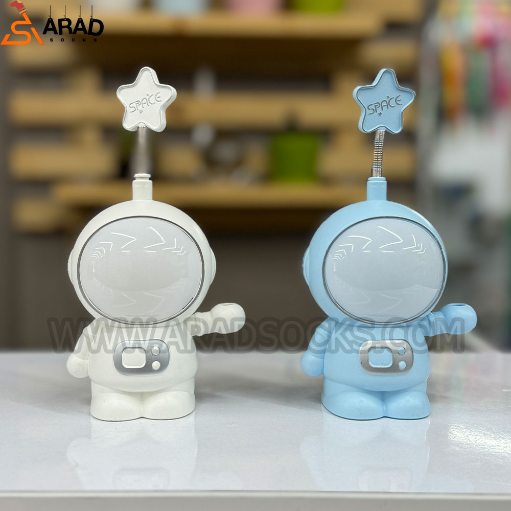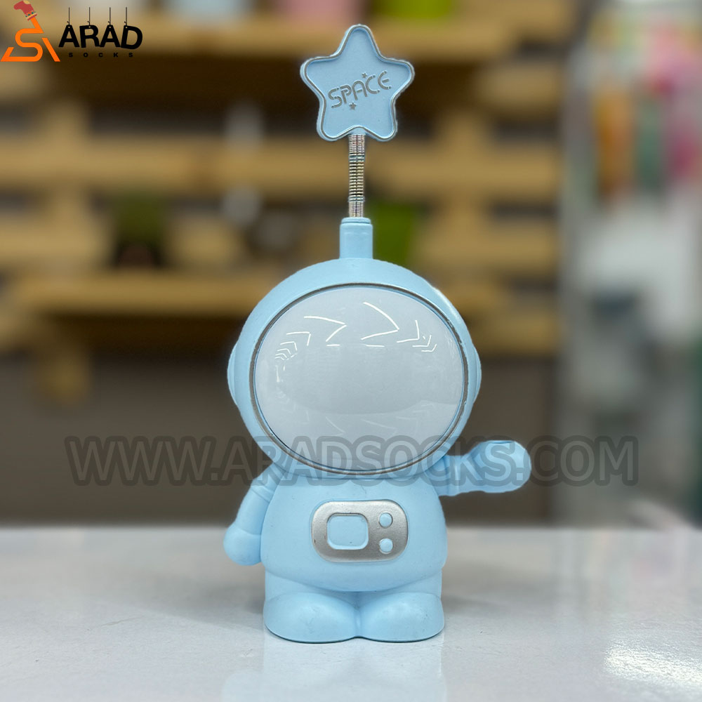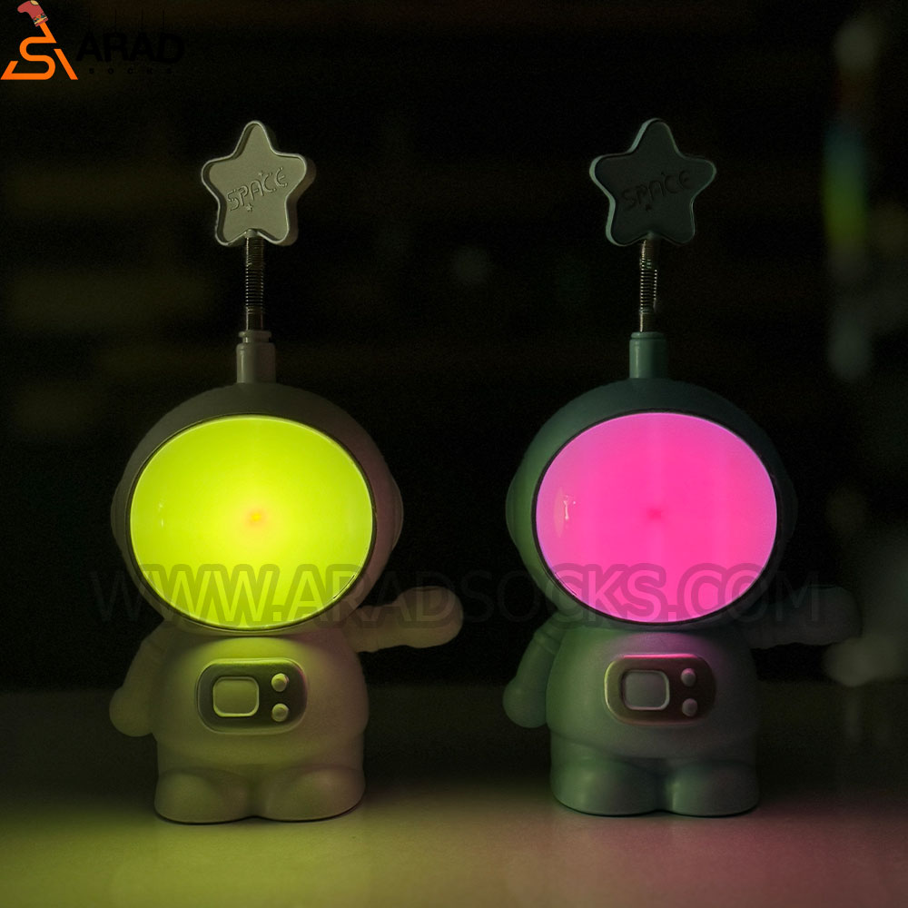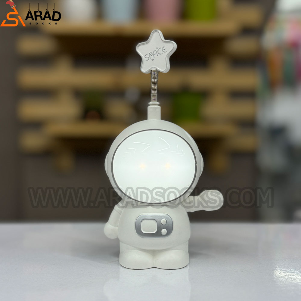 شبخواب طرح فضانورد دارای دو نوع نور ثابت به رنگ سفید نور متغیر و متغیر است. همچنین در پشت این چراغ مطالعه تراش کاربردی نیز وجود دارد. این محصول شارژی و دارای کابل شارژر میباشد، ارتفاع این محصول 15 سانتی متر و جنس آن پلاستیکی است.